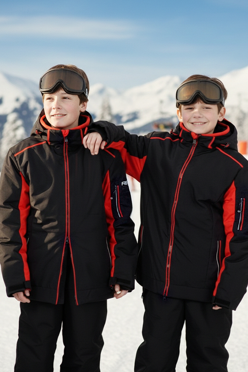 Дитяча гірськолижна куртка Freever NF 21645 у червоному кольорі створена для активного зимового катання в умовах снігу, вітру та підвищеної вологості. Зовнішній матеріал зі 100% поліестеру оснащений мембраною з водонепроникністю 15 000 мм та дихаючою здатністю 15 000 г/м²/24 год, що забезпечує надійний захист і комфорт під час руху.
