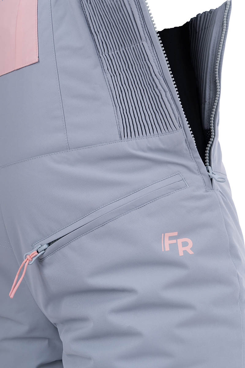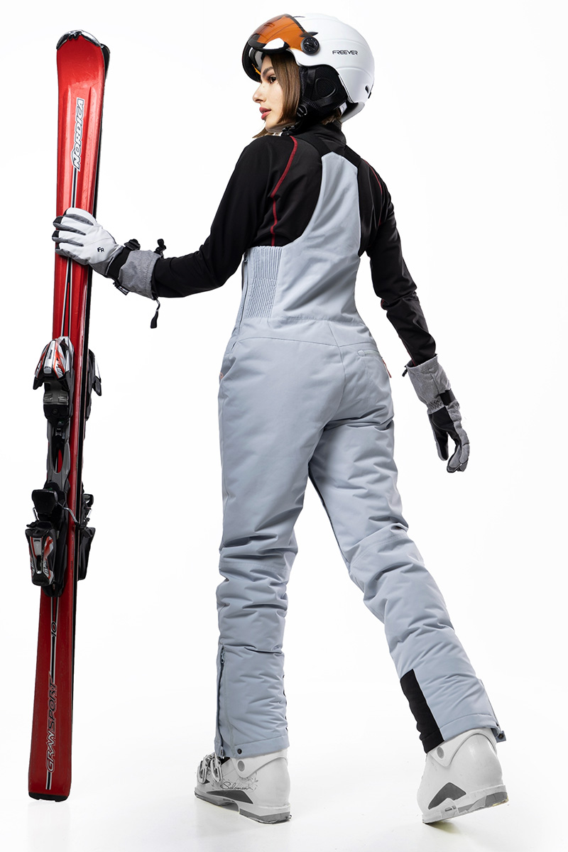 Штани жіночі Freever AF 7901 сірі - функціональний та модний напівкомбінезон для лиж, сноуборду та активного відпочинку не природі взимку. Якісна еластична мембрана на утепленій підкладці з термовідбивним шаром, формує красивий силует, забезпечує ідеальну посадку і повну свободу дій, чудово відводить пару, захищає від холоду й опадів. З боків є еластичні трикотажні вставки на блискавках. Передбачена примусова вентиляція на сітчастих блискавках, на внутрішній частині стегон. Низ посилено міцною тканиною від порізів кантами лиж. На колінах артикульований крій. Штанини мають блискавки для зручного надягання лижного взуття. Є три кишені спереду та одна ззаду. Усі блискавки водонепроникні, а шви герметично проклеєні.