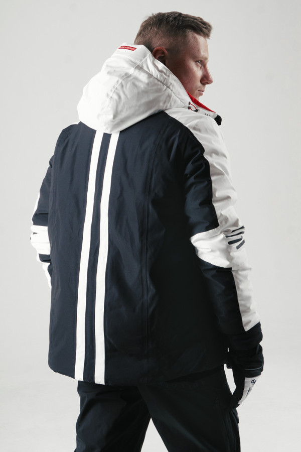 Особливість куртки: двозамкова блискавка, подвійні манжети, низ і капюшон регулюються в обсязі, снігозахисна спідниця, зручні внутрішні та зовнішні кишені, в тому числі окремі для маски й скіпасу. Також передбачені сітловідбивальні елементи та вихід під навушники. Особливість штанів: висока посадка, підкладка на антистатичному мікрофлісі, артикульований крій колін та регульована талія. Усі шви проклеєні. Є знімні підтяжки й подвійні манжети: внутрішні на гумці, а зовнішні на блискавках і кнопках.
