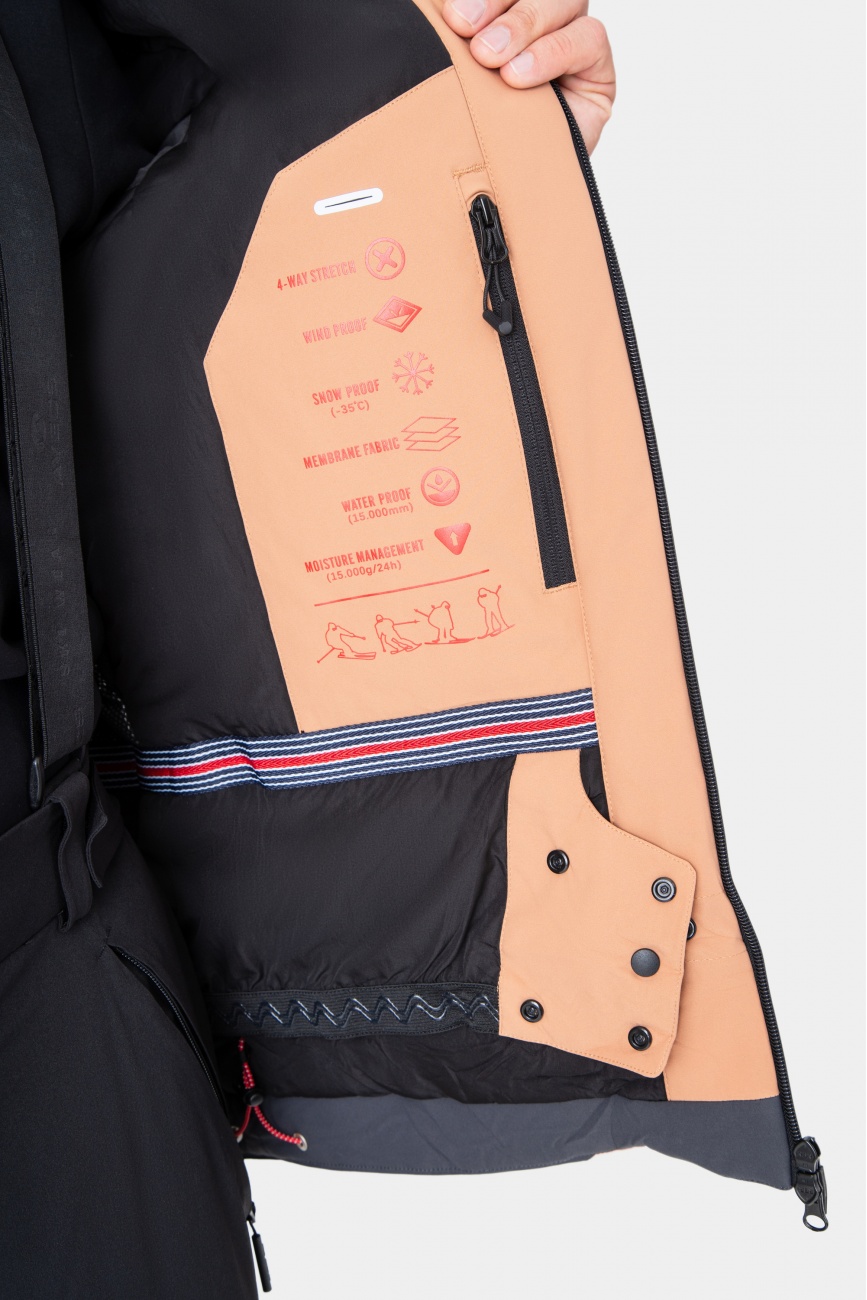 Гірськолижна куртка AVECS має ряд технологій для забезпечення комфорту, захисту і практичності під час гірськолижних пригод. Ви будете надійно захищені від дощу та снігу, оскільки високі водовідштовхувальні можливості тканини здатні витримати до 15 000 крапель вологи, зберігаючи куртку сухою.