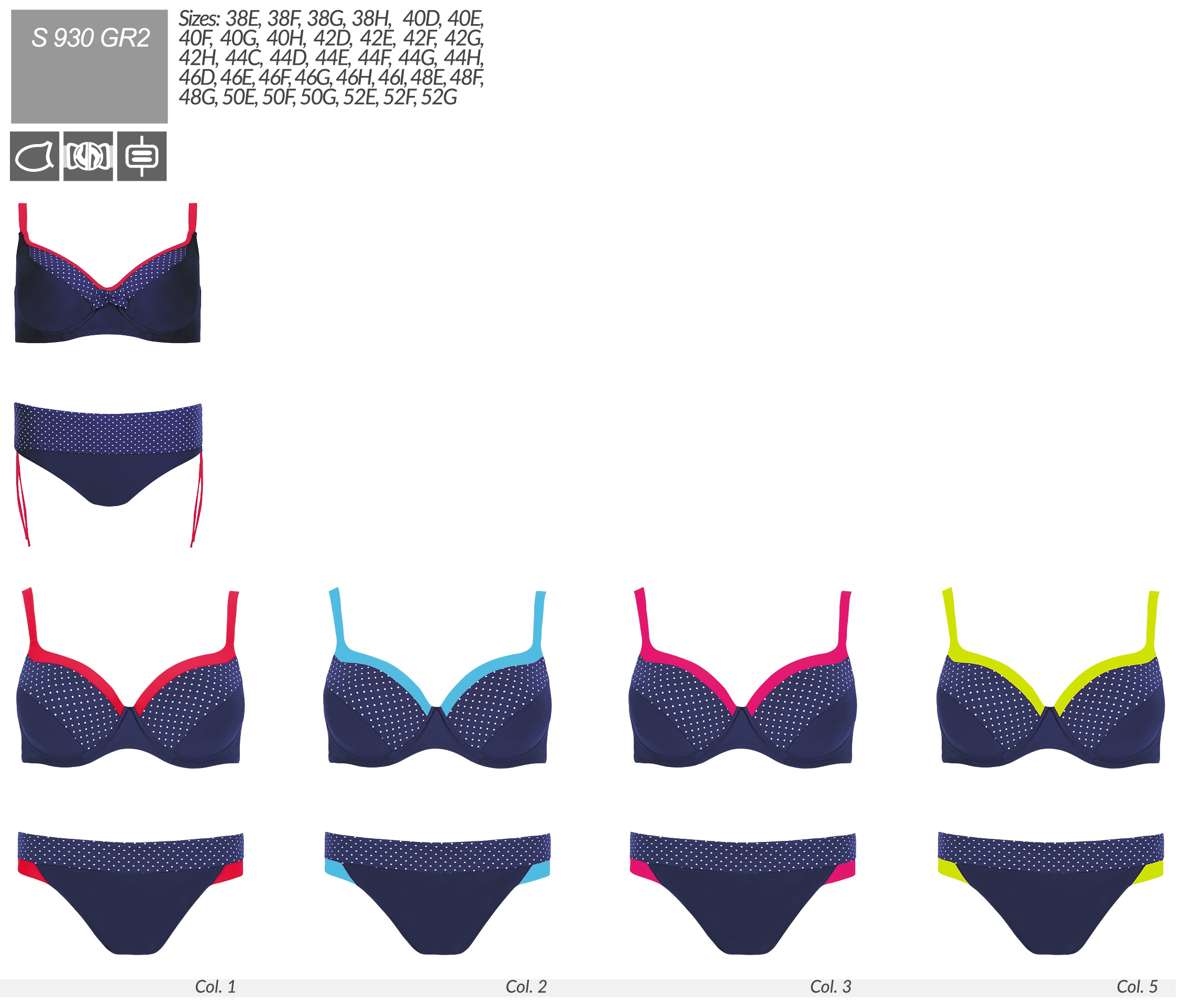 Купальник жіночий роздільний SELF S 930 GR2 2017 - елегантний роздільний пляжний купальний костюм з колекції 2017 року. Без деформації чашки під час постійного використання купальника SELF S 930 GR2 2017. Плавки бікіні купальника SELF S 930 GR2 2017 декоровані широким поясом у тон ліфа - пояс регулюється по висоті посадки бічними тасьмами.