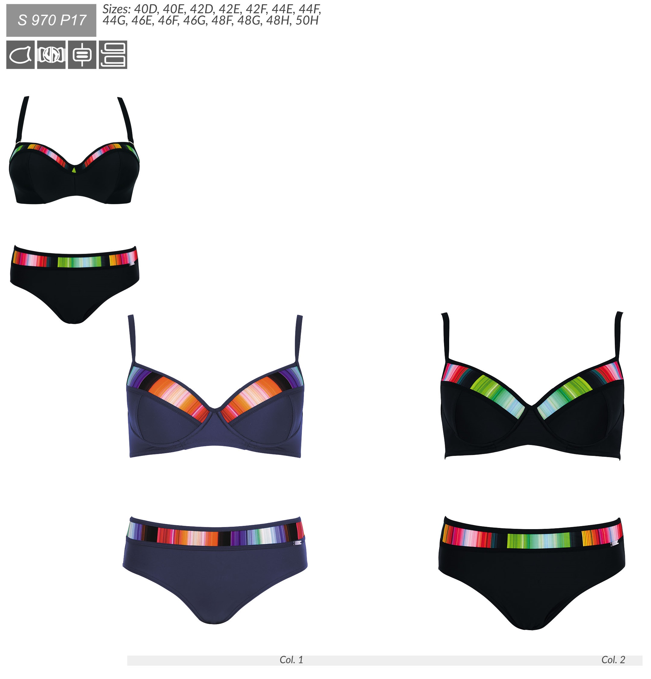 Купальник жіночий роздільний SELF S 970 P17 2017 - жіночний роздільний пляжний купальний костюм з колекції 2017. Без деформації чашки під час постоюного використання купальника SELF S 970 P17 2017. Плавки та верх купальника SELF S 970 P17 2017 декоровані кольоровим декором.