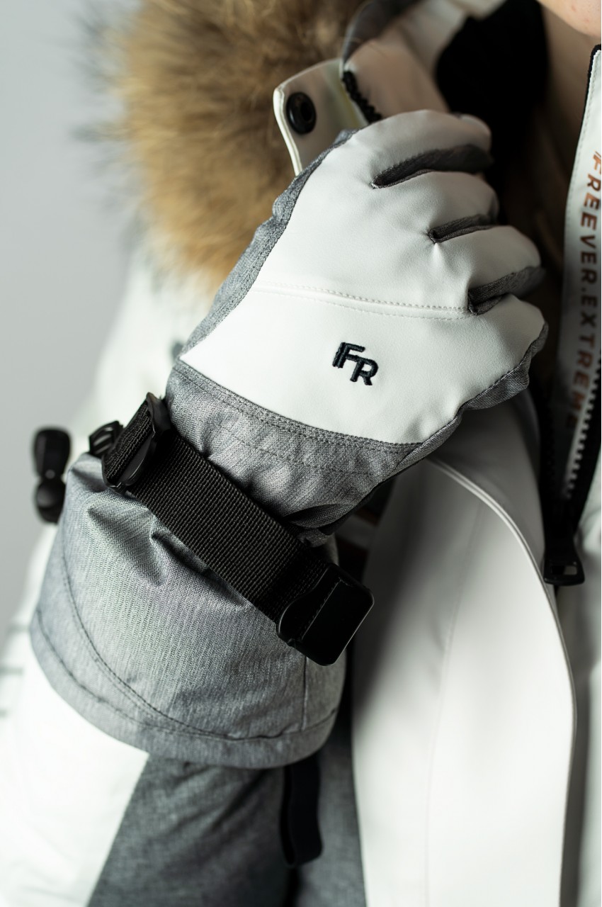Горнолыжные женские перчатки FREEVER WF 1801 Утеплитель:холлофайбер Подкладка:100% polyester Антистатичный микрофлис Водопроницаемость:10 000 мм Цвет:белый Утяжки с фиксатором: На запястье